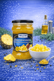 Ананасовий джем Helcom- це яскравий тропічний десерт польського виробництва, що має насичену консистенцію та збалансований кисло-солодкий смак. Він чудово підходить для різноманітних кулінарних цілей.