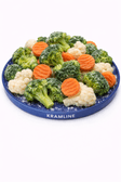 Овочі заморожуються відразу після збору врожаю, тому вони мають свіжий смак і зберігають корисні якості протягом усього року. Склад: морква, стручкова квасоля, цвітна капуста, броколі, брюсельська капуста.